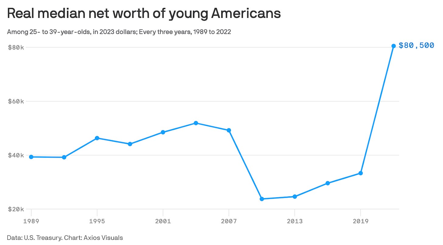 Despite being richer than previous generations at their age, Americans under 40 years old feel increasingly fragile about their financial standing due to the loud luxury economy that dominates our media ecosystem. A Wells Fargo study found that over 40% of Millennials believe it’s important to have visible signs of wealth—cars, luxury homes, designer clothing—compared to only 21% of Gen Xers and even fewer Boomers. Meanwhile, a CreditKarma study found that nearly 44% of Gen Z and 46% of Millennials obsess over the idea of being rich, and approximately the same percentage experience money dysmorphia.