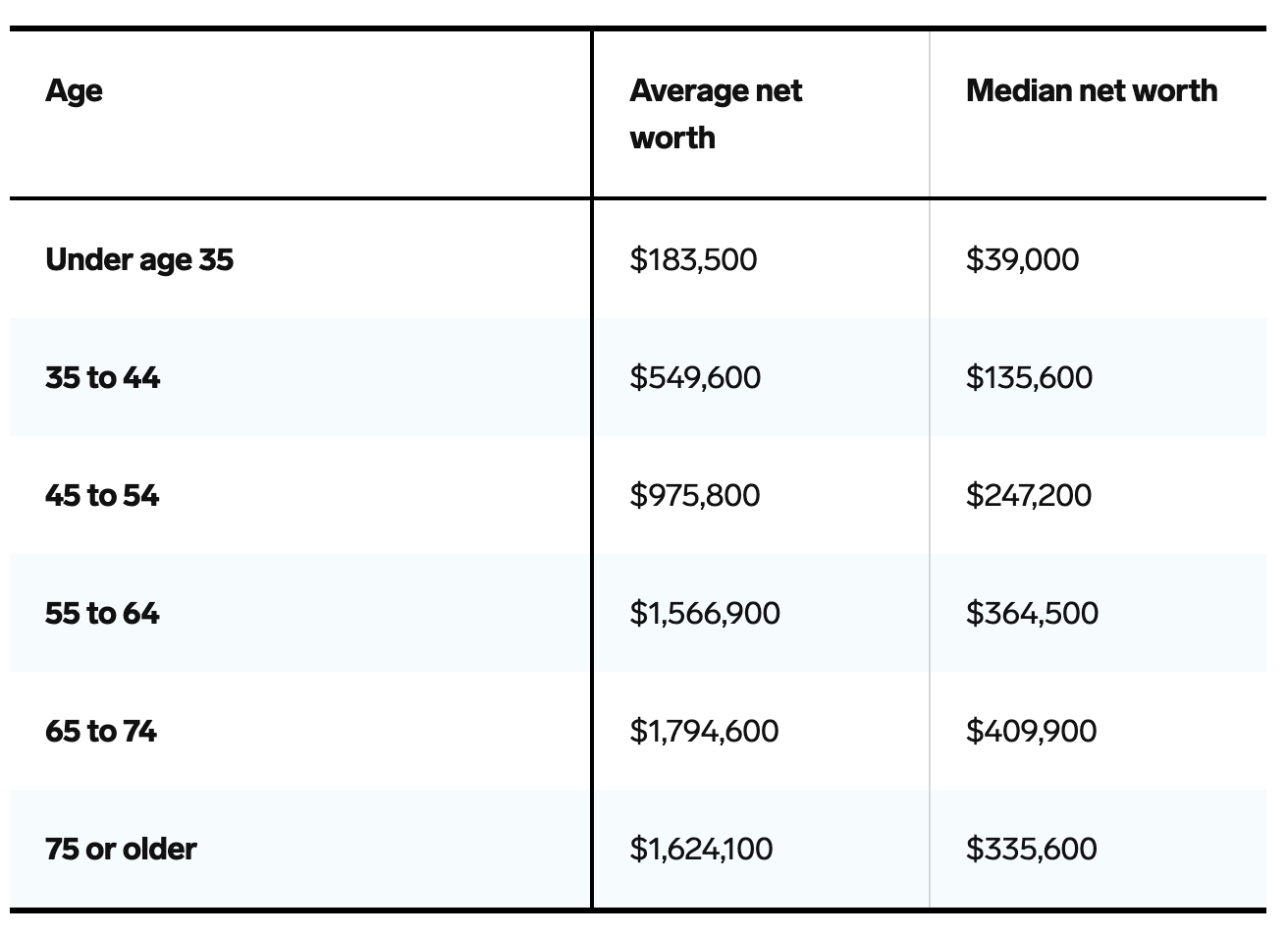 Here's the typical American's net worth by age, according to Federal Reserve data: